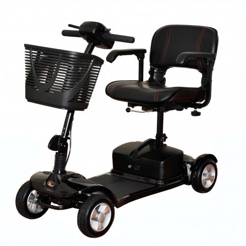 The K-Lite Comfort lightweight mobility scooter is amazingly manoeuvrable and easy to load into the boot. It’s a pure delight to get you out and about. Every aspect of the K-Lite has been thought through to make this scooter easy to use and transport. The mobility scooters patented docking system can be operated by one hand is extremely easy to use when taking apart. Once taken apart he heaviest part weighs 14kgs. The K-Lite has black non-scruff tyres that are puncture proof. Complimented by the alloy look wheels the K-Lite will certainly look the part. You can easily adjust the angle of the tiller by turning the large soft grip rubber knob. The seat swivels, has folding armrests and is height adjustable. The ignition and horn switch are waterproofed against the elements for safety reasons. The battery display is back lit as an added bonus feature to the scooter. This stylish scooter is available in 4 unique colour’s and includes a useful storage basket on the front. Kymco are known for their attention to detail and high quality engineering so we have no doubt that this is going to be another popular scooter.