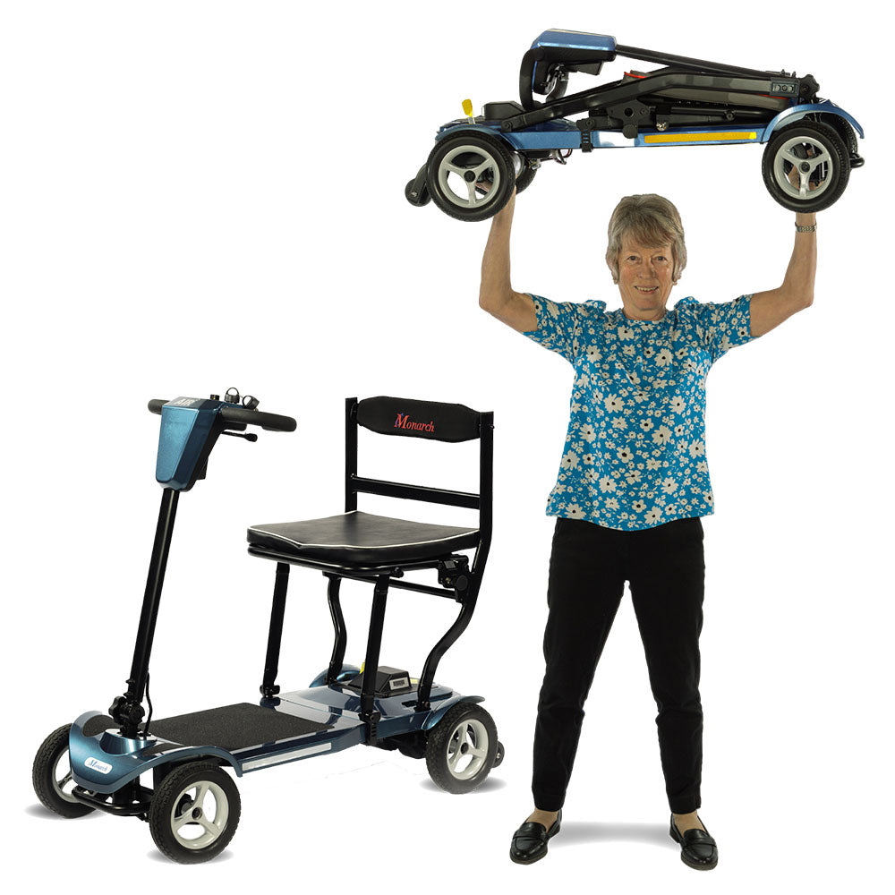 The Monarch Air is the lightest 4-wheel boot mobility scooter in the world. Its ideal for anyone looking for a lightweight and easy-to-use mobility aid solution.